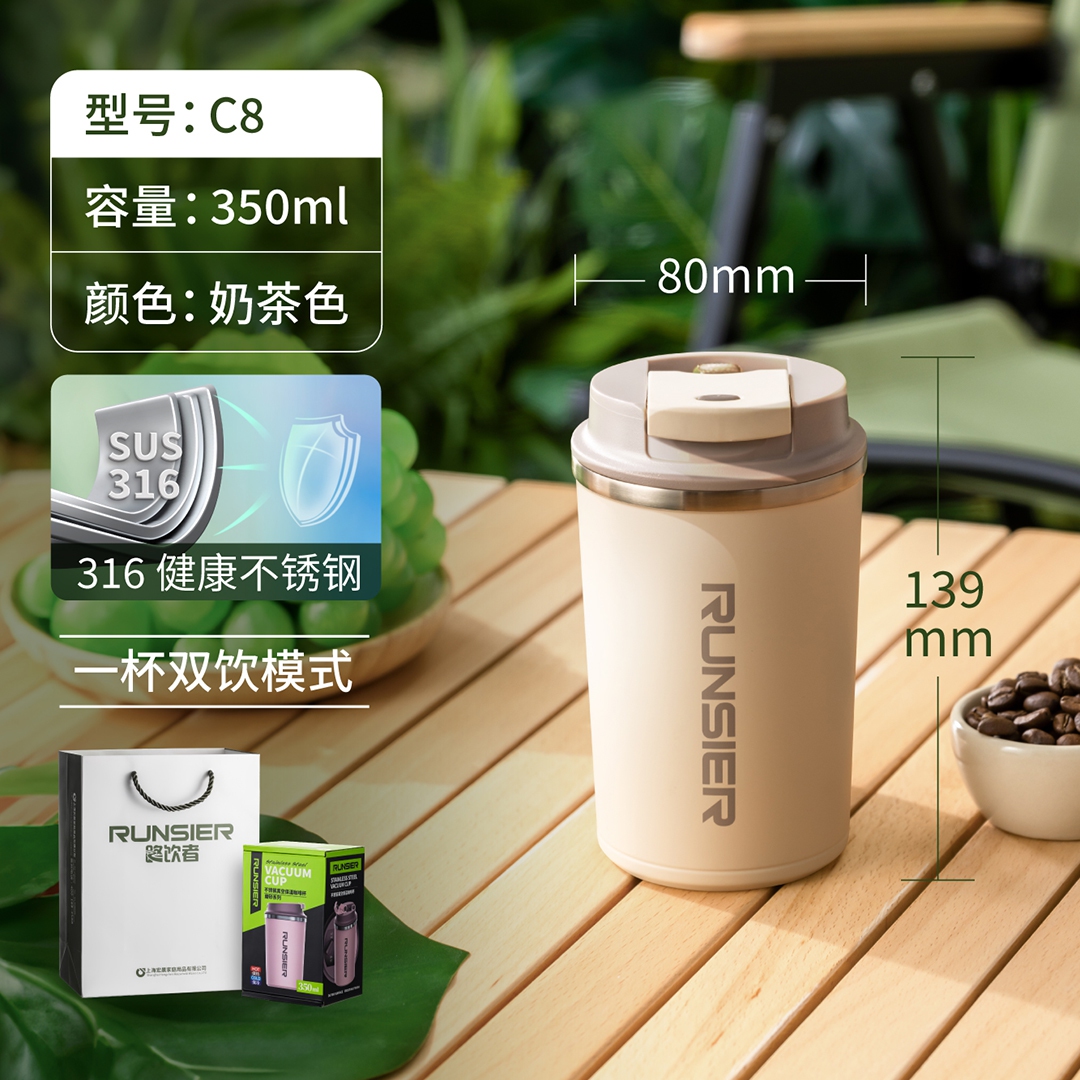 路飲者不銹鋼真空保溫咖啡杯 C8-薄荷綠、淺桃粉、奶茶色、雅致黑:¥263 C8S-薄荷綠、淺桃粉、奶茶色、雅致黑:¥275 C9-奶茶色、淺紫藍、薄荷綠、雅致黑:¥288 C9S-奶茶色、淺紫藍、薄荷綠、雅致黑:¥300